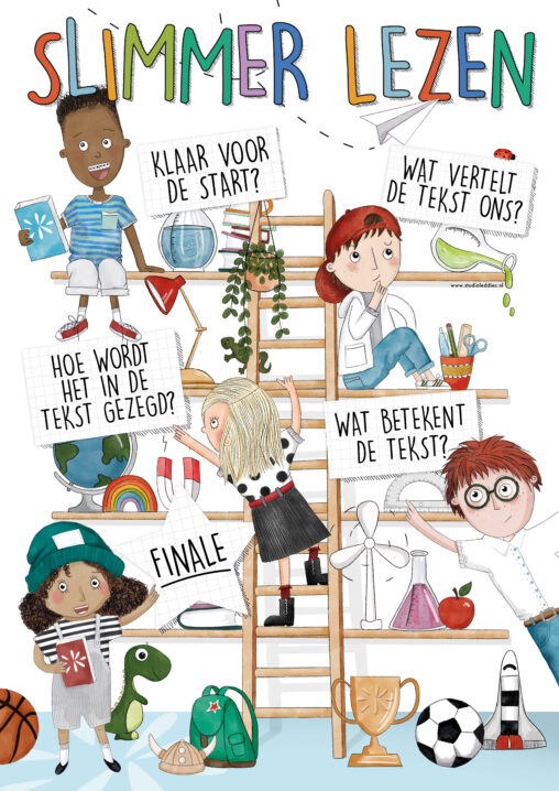 In samenwerking met o.b.s. de Klinker in Oud-Beijerland heb ik een poster getekend waarin er op een speelse manier de ‘Slimmer lezen’ methode wordt uitgelegd.