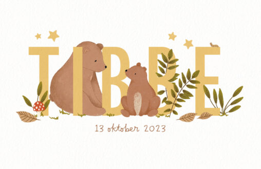 Een geboortekaartje voor Tibbe. Geïnspireerd op het kaartje van zijn oudere broer die ik ook heb mogen maken. Het kaartje heeft invloeden van de herfst en het geel…